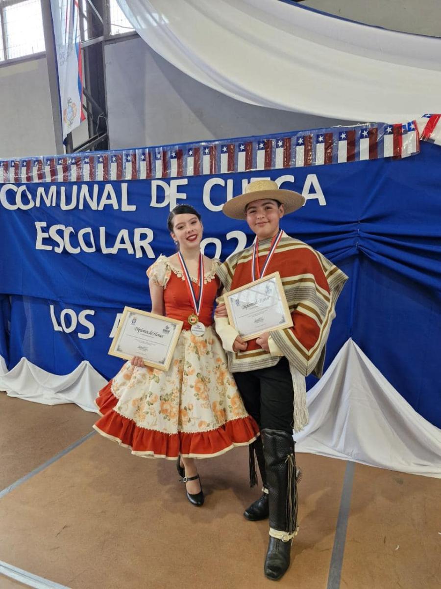 El día jueves 22 se llevó a cabo el Campeonato Comunal de Cueca en las dependencias del Gimnasio Municipal, del cual nuestra pareja campeona obtuvo el Tercer Lugar Comunal en la categoría Enseñanza Media. Felicitamos a nuestros estudiantes Fernanda Ramírez del 1ºF y Agustín Anabalon del 1ºA por representarnos y estar dentro de los tres primeros lugares. Valoramos su dedicación y esfuerzo en representar a nuestra comunidad educativa ![]()